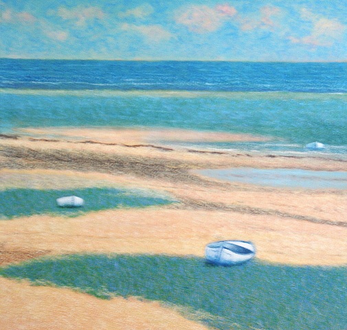 TROIS BATEAUX HUILE SUR TOILE 80X80cm